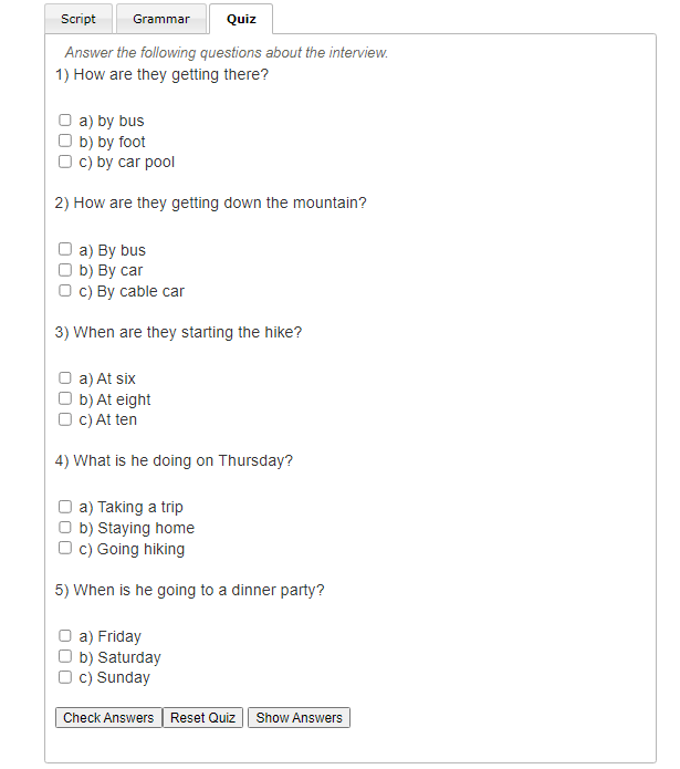 그리고 간단한 문법과 본문에 대한 퀴즈까지 있어서 영어듣기를 하고 내가 제대로 이해했는지에 대하여도 확인해 볼 수 있습니다.
